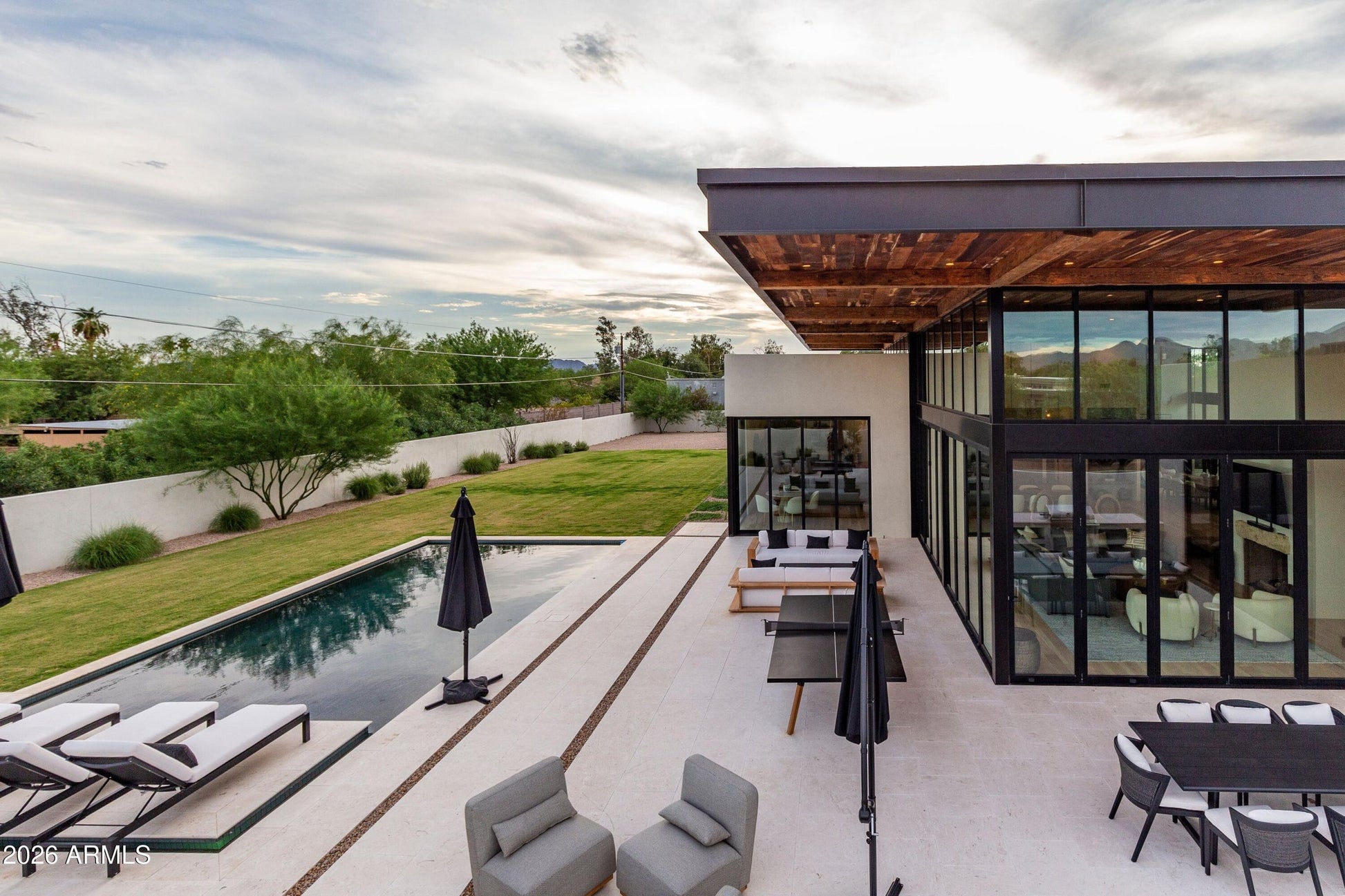 Set on approximately one acre, the property is located about 15 minutes from Old Town Scottsdale and Fashion Square and 20 minutes from hiking at Camelback Mountain. The home is offered fully furnished and professionally designed.